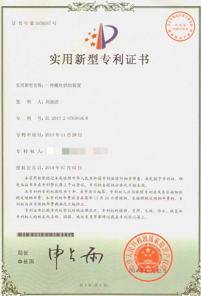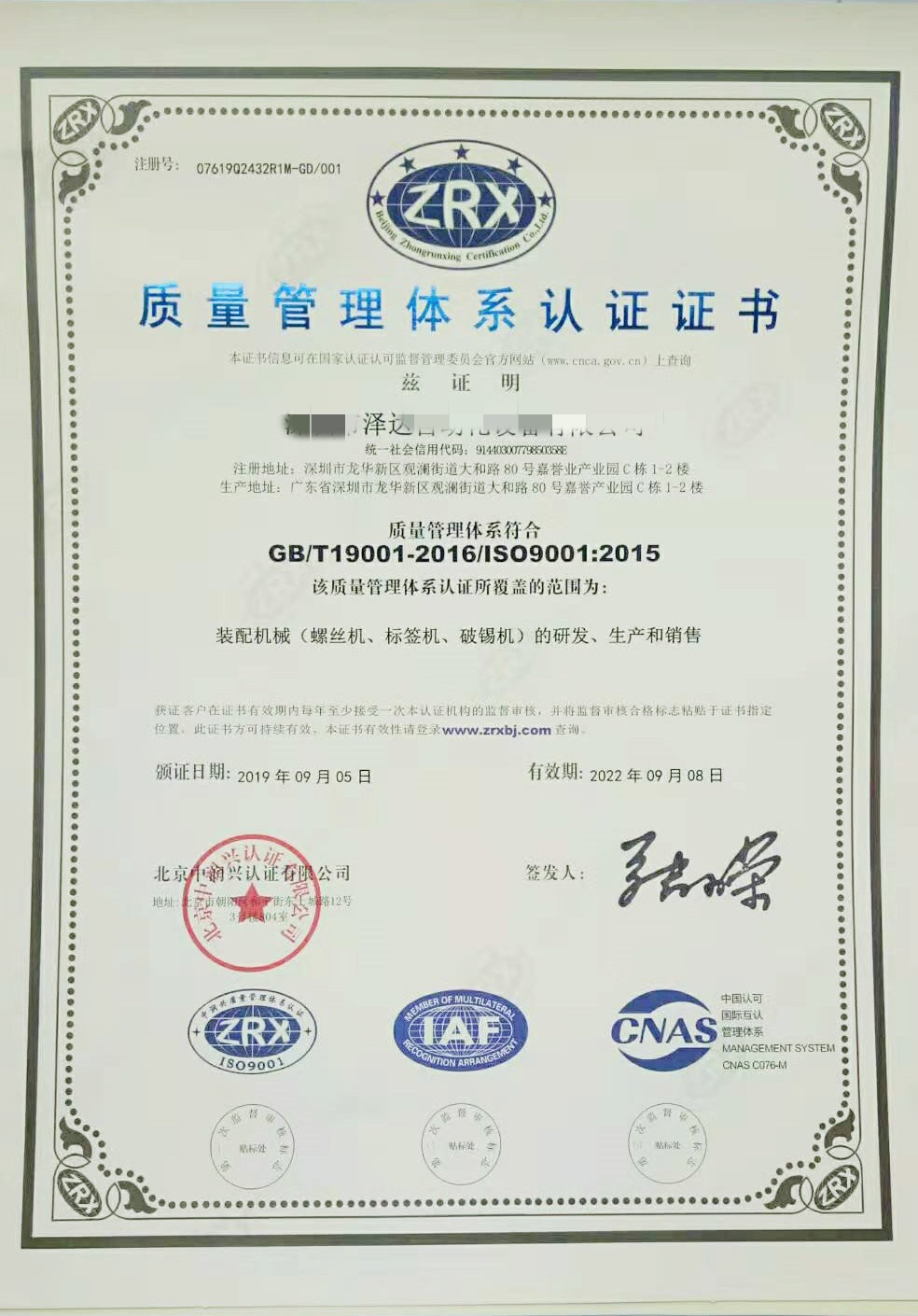 螺丝机专业生产厂家已通过ISO9001质量管理体系认证